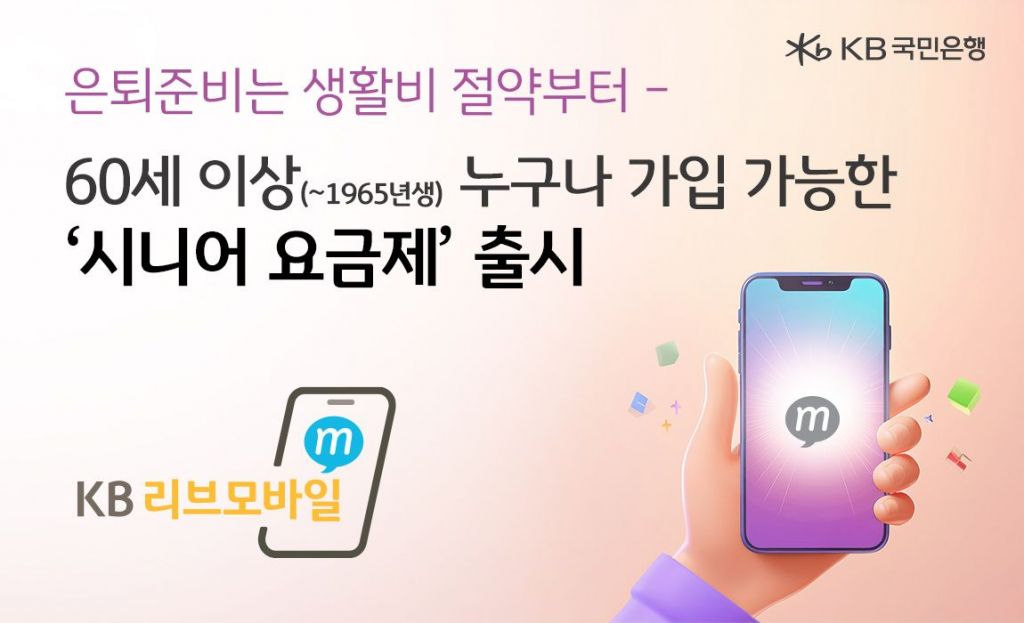시니어 요금제는 실질적 은퇴 시점인 60세부터 가입이 가능하며 KB국민은행 전국 영업점에서 상담 및 개통할 수 있다.