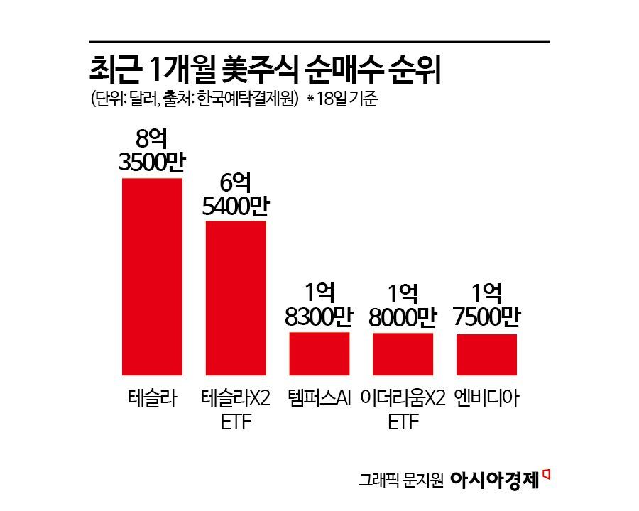 한국예탁결제원 증권정보포털 세이브로에 따르면 국내 투자자들은 지난 18일까지 최근 1개월 동안 템퍼스AI 주식 약 1억8300만달러(약 2621억원)어치를 순매수했다. 상장지수펀드(ETF)를 제외할 경우 테슬라에 이어 2위다. 같은 기간 엔비디아 주식은 1억7500만달러가량을 사들였다. 올해 들어 서학개미 순매수 2위를 지켜온 엔비디아의 입지가 딥시크 쇼크 이후 흔들리고 있다는 평가가 나온다.