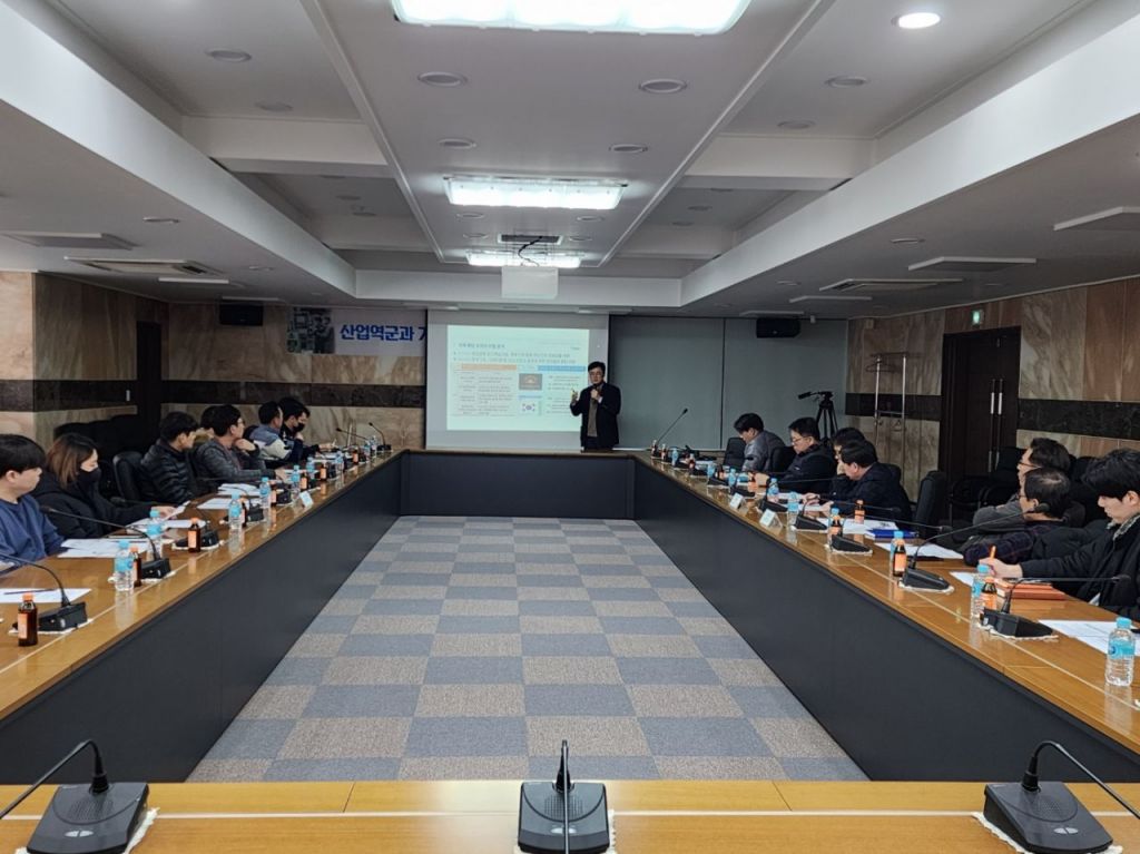 구미상공회의소 3층 회의실에서 지역 제조업체 산업보안 담당자 및 유관기관 관계자들이 참석한 가운데 구미 제조업체 산업보안 역량 강화 및 소통 간담회를 열고 있다.