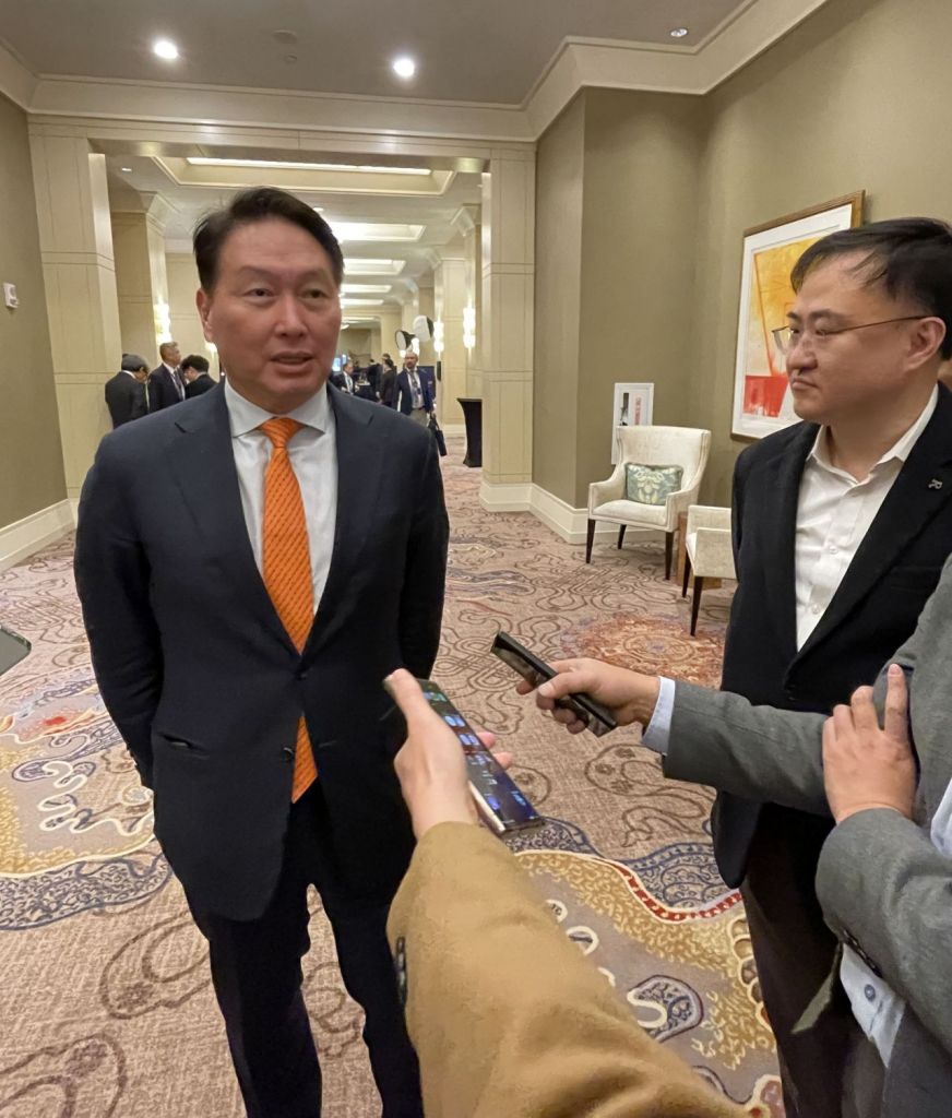 또한 최 회장은 트럼프 행정부가 글로벌 파운드리(반도체 위탁생산) 1위 업체인 대만 TSMC에 미국 인텔 공장 인수 타진까지 하면서 압박한다고 알려진 것과 관련해 "압박을 한다? 나는 그렇게 안 보인다"고 답했다.