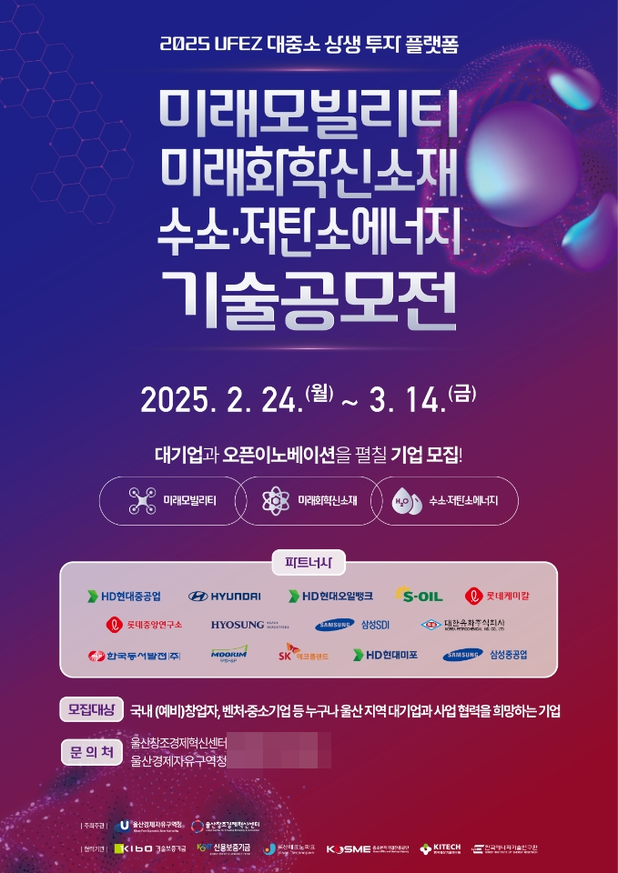울산경제자유구역청은 ‘2025년 울산경제자유구역(UFEZ) 대중소 상생 투자 플랫폼 공모전’을 개최한다.