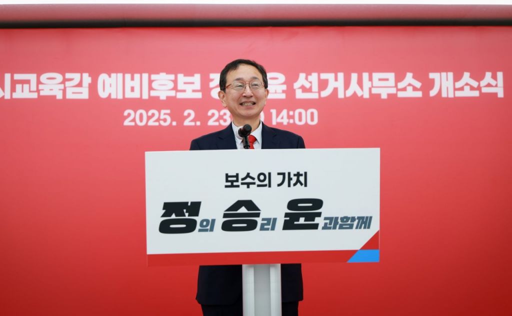 4·2 부산시교육감 재선거에 출마한 정승윤 예비후보가 선거사무소 개소식을 시작으로 본격적인 보수 결집에 나선다.