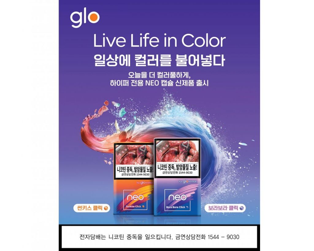 이번 캡슐형 네오 2종은 올해 글로의 브랜드 캠페인 '리브 라이프 인 컬러(Live Life in Color)'를 알리는 첫 제품으로, 캡슐을 터트리면 새로운 풍미가 더해져 상쾌하고 청량한 느낌을 즐길 수 있다.