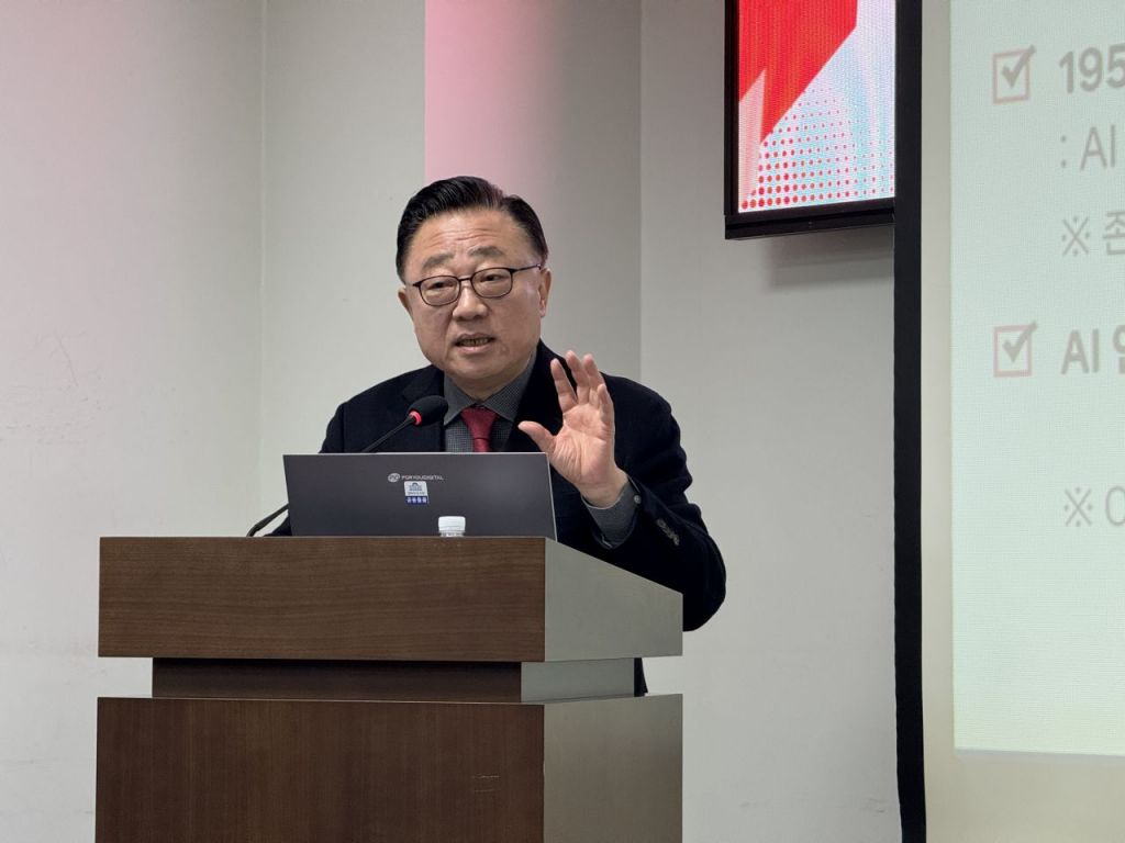 고동진 국민의힘 의원이 지난 21일 국회 의원회관에서 AI에 대해 강연하고 있다. 사진=백종민 테크 스페셜리스트