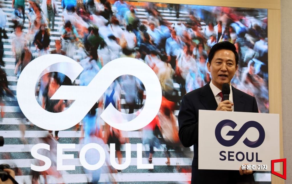 오세훈 서울시장이 24일 서울시청에서 서울 교통체계 통합브랜드 'GO SEOUL(고 서울)' 발표를 하고 있다.