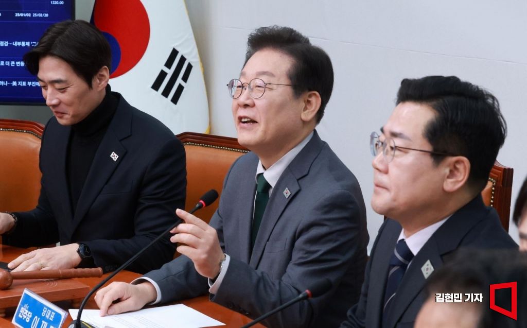 이재명 더불어민주당 대표가 24일 국회에서 열린 최고위원회의에 참석하고 있다. 2025.2.24 김현민 기자