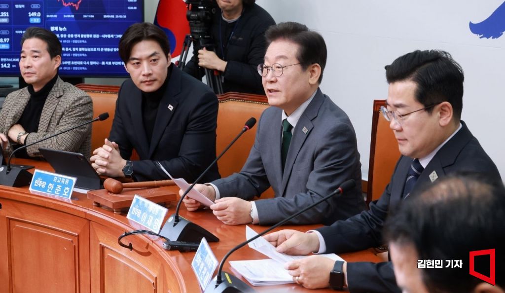 이재명 더불어민주당 대표가 24일 국회에서 열린 최고위원회의에서 발언하고 있다.