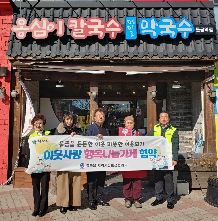 경남 양산시 물금읍은 71번째 행복나눔가게로 ‘옹심이칼국수메밀막국수’(대표 이정애)와 협약을 체결했다.