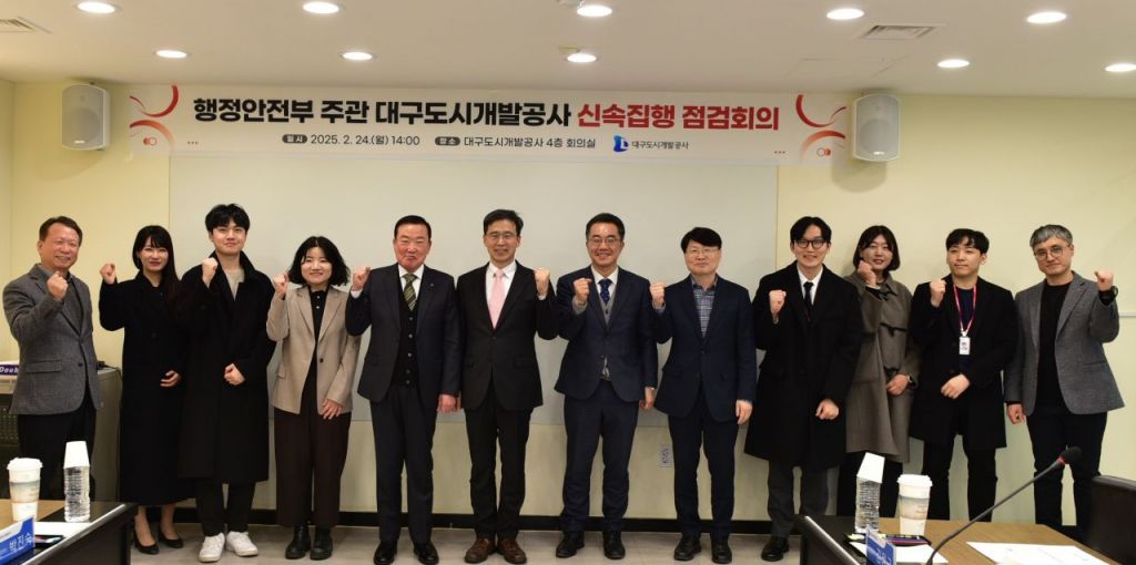 대구도시개발공사(사장 정명섭)는 정부 및 지자체의 재정 신속 집행 정책에 동참해 지역경제 활성화에 기여하기 위해 행정안전부 지역경제지원국 주관으로 24일 ‘2025년 1분기 재정 신속 집행 현장점검 회의’를 개최했다.