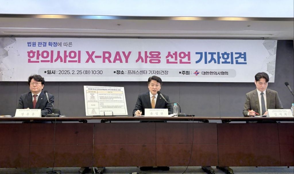윤성찬 대한한의사협회 회장은 25일 한국프레스센터에서 기자회견을 열고 "한의사의 의료기기 사용은 법적 문제가 없음에도 양방 의료계의 집요한 방해와 보건복지의 무책임한 방관으로 부당하게 제한돼 왔다"며 "국민의 진료 선택권을 높이고, 경제적 부담을 줄일 수 있도록 대한한의사협회 임원들부터 엑스레이를 적극 사용하겠다"고 말했다.