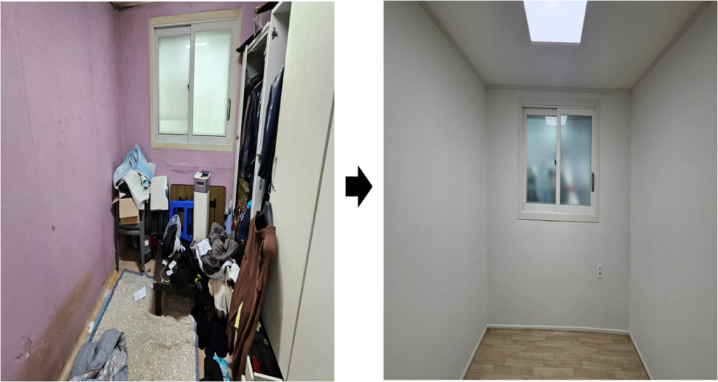 #서울 도봉구의 한 4인 가족은 벽지와 장판에 곰팡이가 가득한 반지하 주택에서 거주했다. 이들 중 아버지를 제외한 3명은 중증 장애인으로 환기 역시 자주 하지 않아 모두 기침을 하는 등 건강을 위협하는 환경에 노출됐다. 서울시는 도배와 장판을 교체하고 주방가구 교체 및 욕실 전체 공사 등 대대적인 주거환경개선공사를 지원했다.