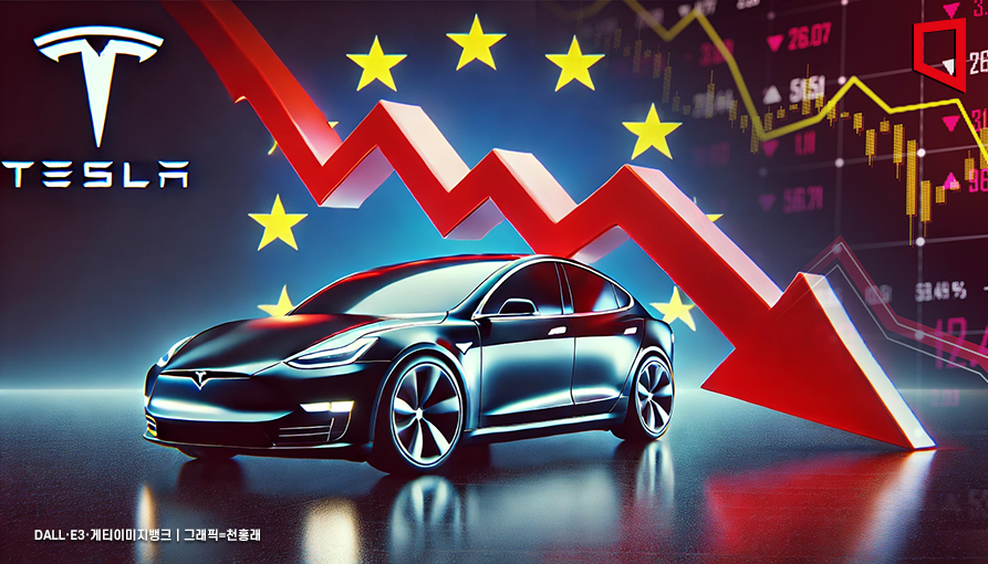 미국 전기차업체 테슬라의 유럽 내 전기차 판매량이 지난달 큰 폭으로 감소하면서 시가총액 1조달러가 무너졌다.