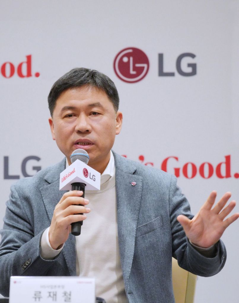 류재철 LG전자 HS사업본부장(사장)이 25일(현지시간) 'DCW 2025'가 열리는 미국 라스베이거스에서 특파원 간담회를 열고 기업간거래(B2B)·에너지 고효율·인공지능(AI) 홈을 중심으로 세계 최대 프리미엄 가전 시장 미국에서 확고한 리더십을 이어가겠다고 밝혔다.