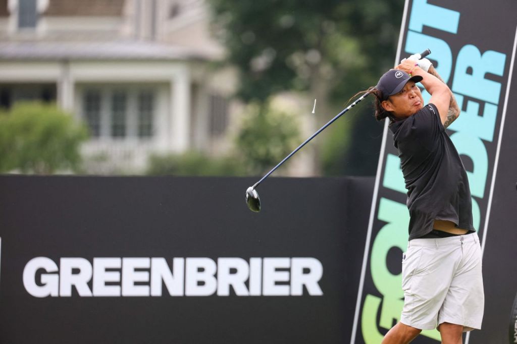 앤서니 김이 2024년 8월 LIV 골프 그린브라이어 대회에서 티샷을 하고 있다. AFP·연합뉴스