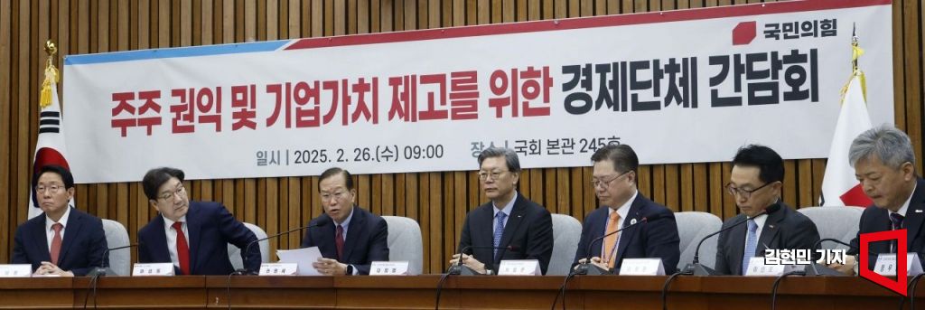 권영세 국민의힘 비상대책위원장이 26일 국회에서 열린 주주 권익 및 기업가치 제고를 위한 경제단체 간담회에서 발언하고 있다.