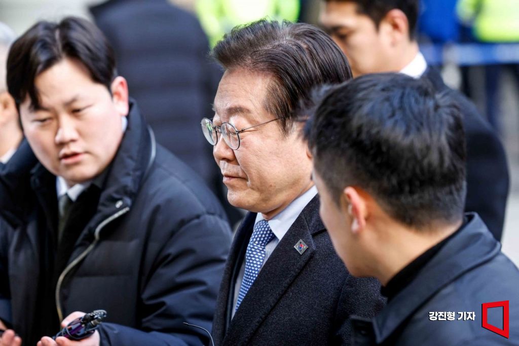 대장동 배임 및 성남FC 뇌물 혐의를 받고 있는 이재명 더불어민주당 대표가 14일 서울 서초구 서울중앙지방법원에서 열린 공판에 출석하고 있다. 2025.2.14. 강진형 기자