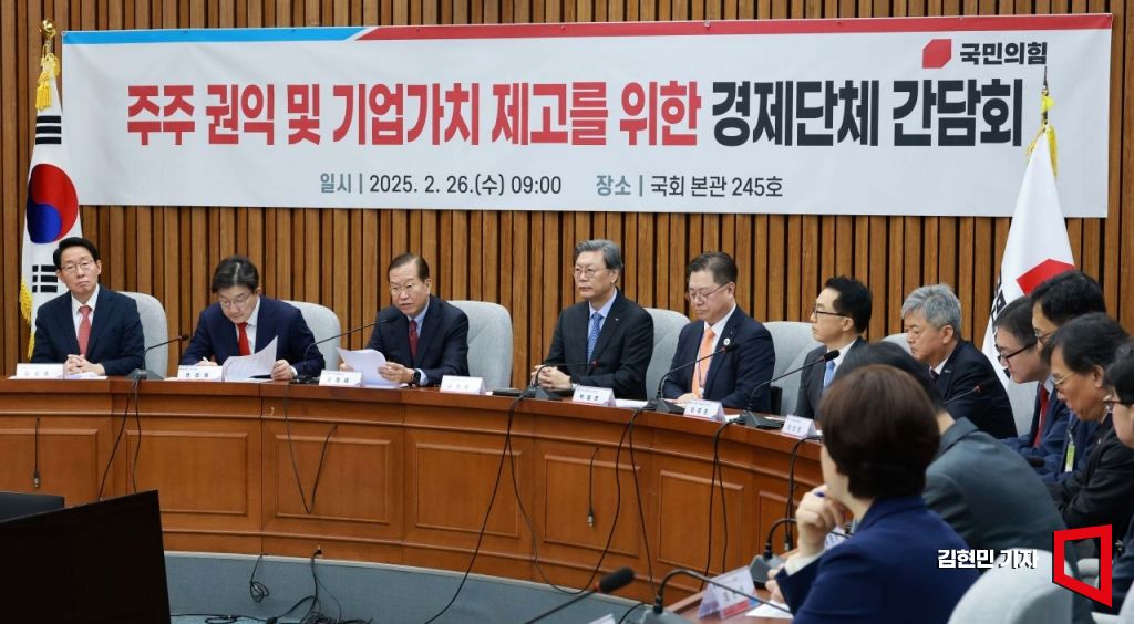 권영세 국민의힘 비상대책위원장이 26일 국회에서 열린 주주 권익 및 기업가치 제고를 위한 경제단체 간담회에서 발언하고 있다.