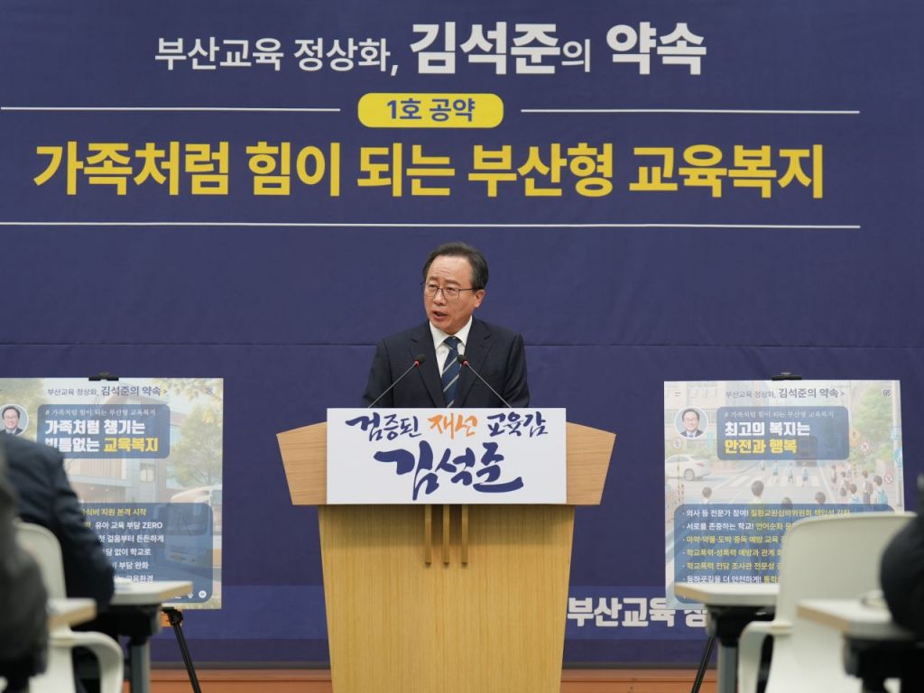 부산시교육감 재선거에 출마한 김석준 예비후보가 ‘부산형 교육복지’ 공약이 담긴 첫 번째 정책 꾸러미를 풀었다.