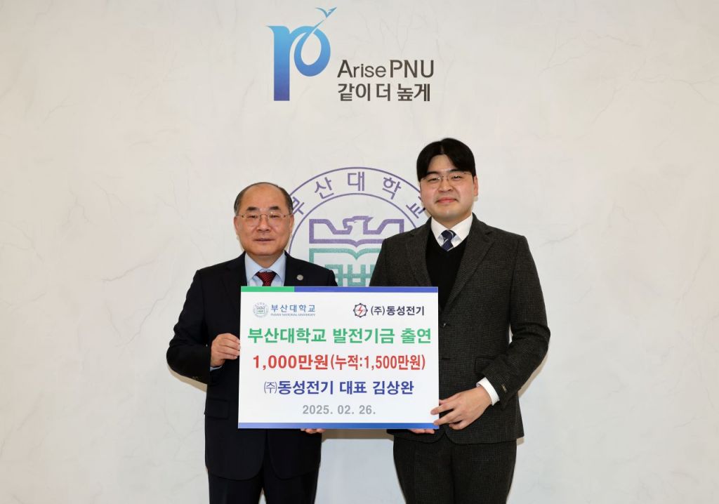 방산 기기 전문기업 ㈜동성전기가 부산대 발전기금 1000만원을 출연하고 있다.