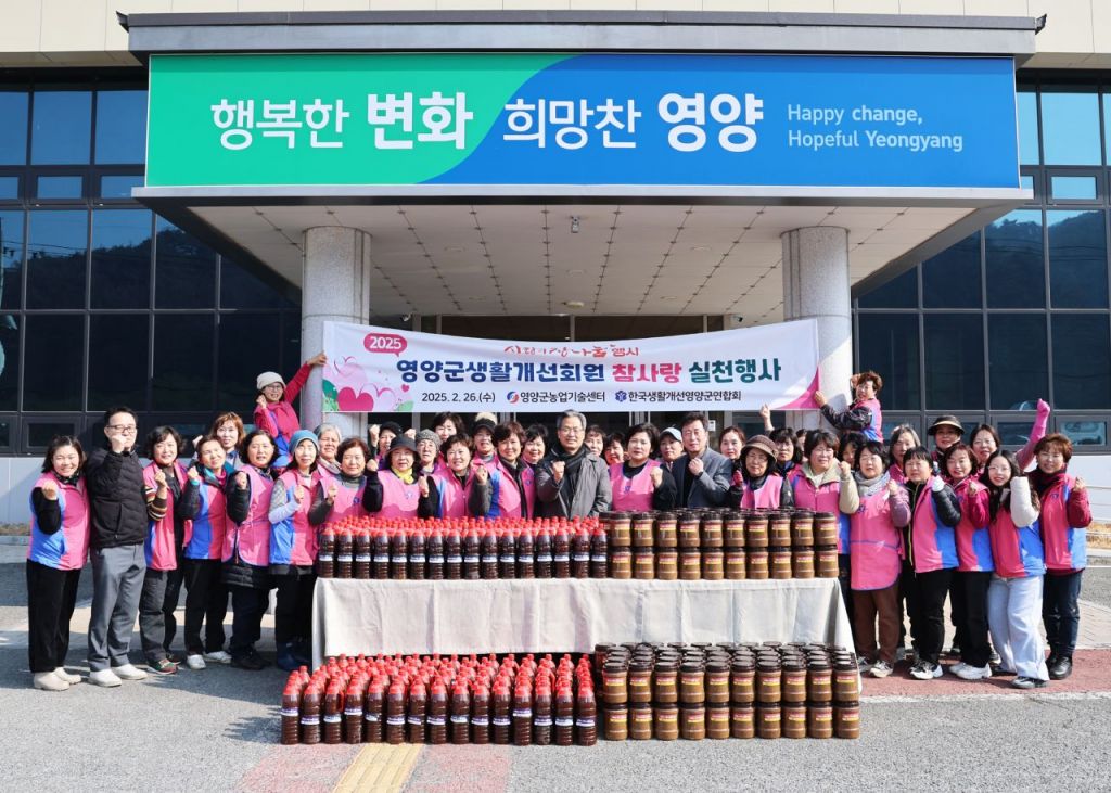 한국생활개선 영양군연합회는 매년 회원들이 영양의 콩으로 만들어진 메주를 구입해 직접 장을 담그고, 1년 동안 항아리에서 잘 숙성시켜 관내 취약 계층 240여곳에 직접 나눔 배달을 하면서 따뜻한 사랑을 실천해 오고 있다.