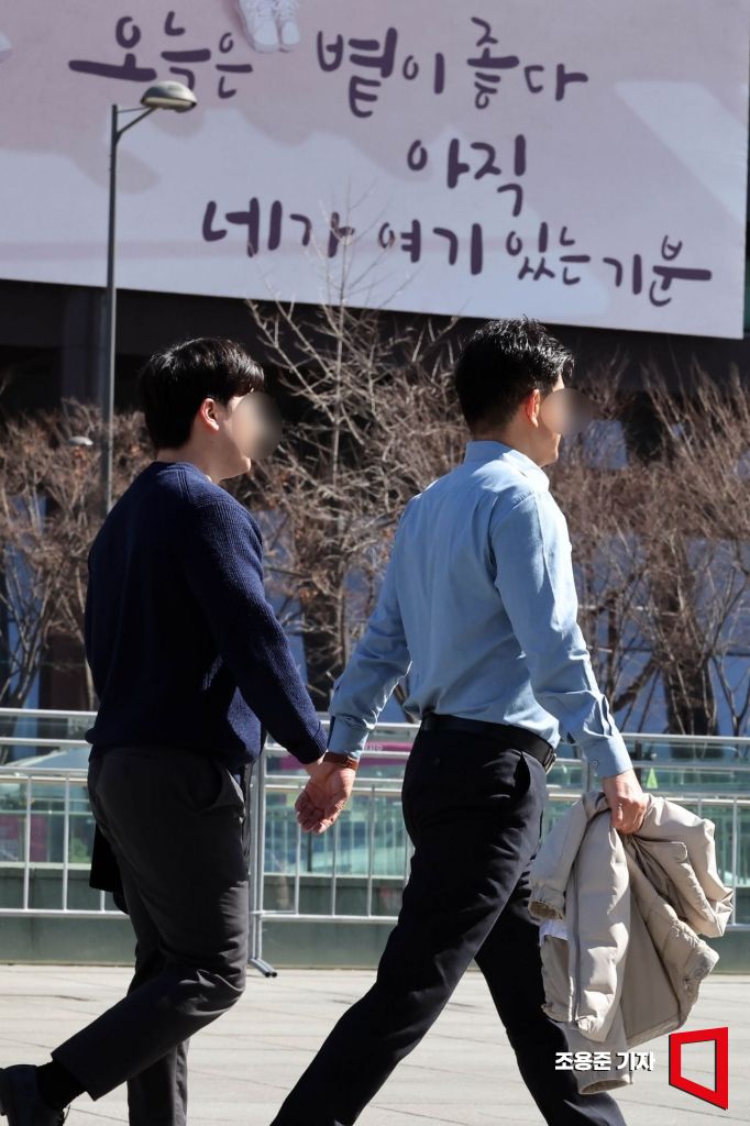 서울 낮기온이 올라가면서 포근한 날씨를 보인 26일 종로구 광화문광장을 찾은 시민들이 겉옷을 벗어 손에 들고 이동하고 있다.