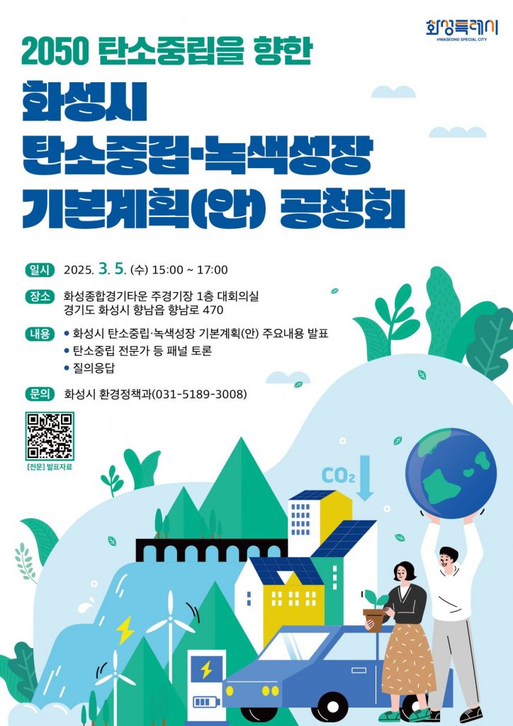 경기도 화성시는 다음 달 5일 화성종합경기타운 주경기장 대회의실에서 '화성특례시 탄소중립·녹색성장 기본계획 수립안' 공청회를 개최한다. '탄소중립·녹색성장 기본계획'은 온실가스 감축과 탄소중립 사회로의 전환을 위한 최상위 법정계획이다.
