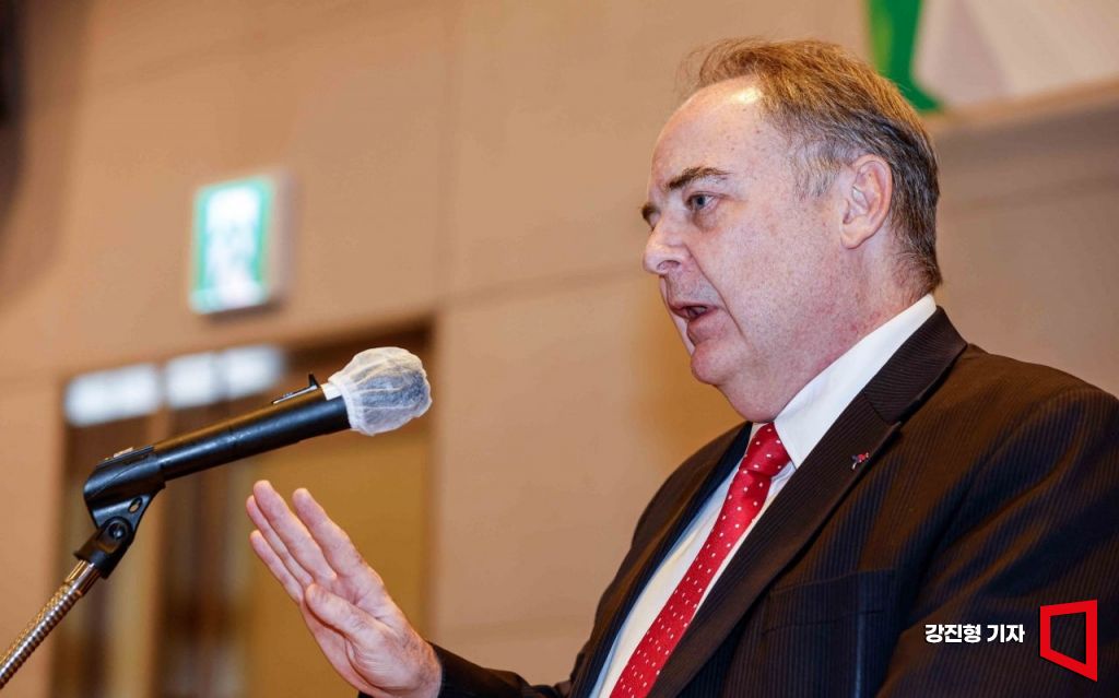 제프 로빈슨 주한호주대사가 26일 서울 여의도 FKI 타워 컨퍼런스센터에서 열린 '한-호주 그린 EPA 비즈니스 포럼'에 참석해 축사하고 있다.