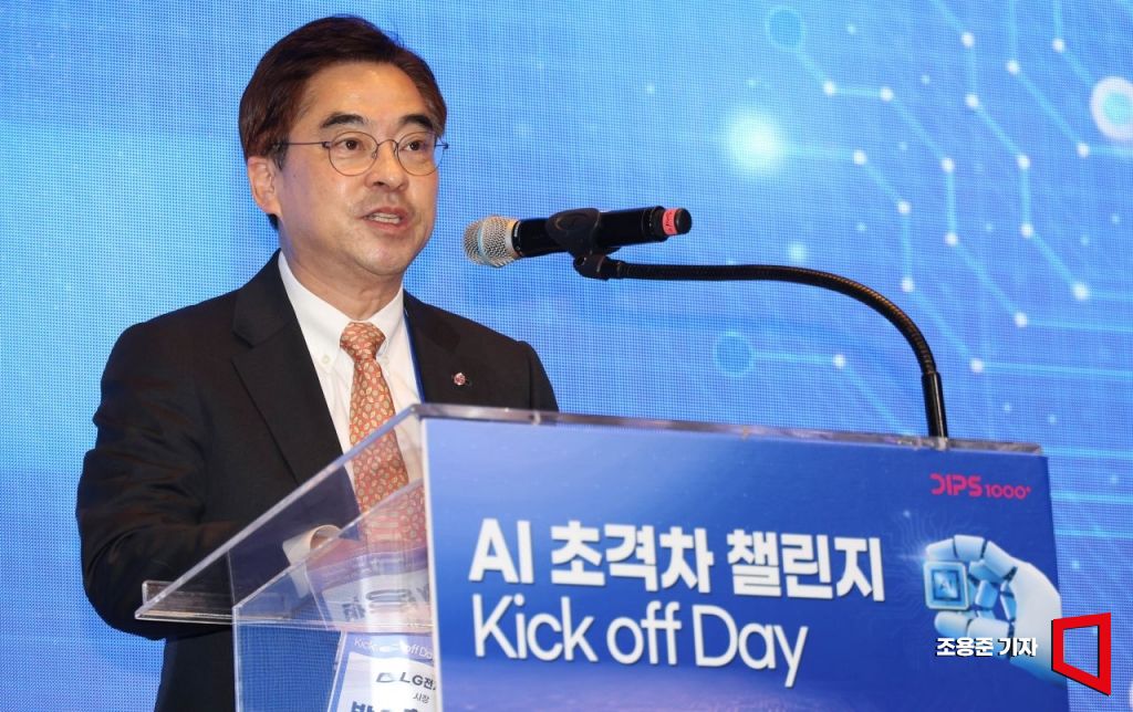 박형세 LG전자 사장이 26일 서울 종로 포시즌스 호텔에서 열린 'AI 초격차 챌린지 Kick-off Day' 에 참석, 인사말을 하고 있다.