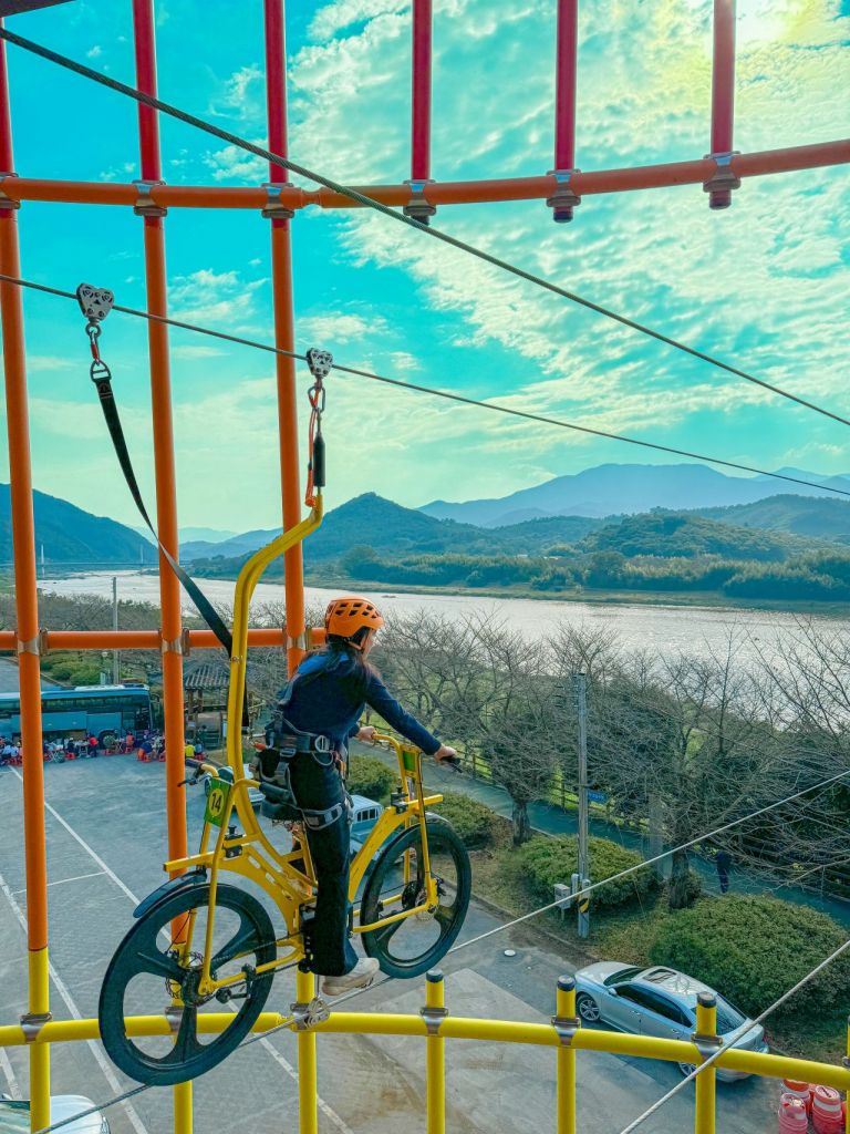 이 시설은 수동 자전거 12대와 전기 자전거 8대로 구성돼 있으며, 신장 120cm 이상이면 누구나 손쉽게 이용할 수 있다. 지상 약 20m 높이에서 섬진강의 푸른 물결과 주변 자연경관을 감상하며 색다른 스릴과 즐거움을 만끽할 수 있는 것이 특징이다.