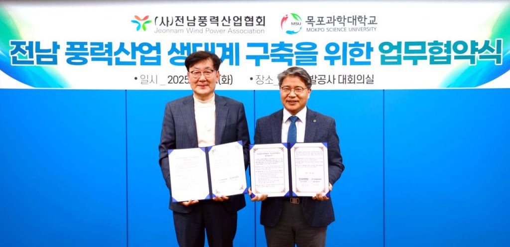 전남풍력산업협회(협회장 전남개발공사 사장 장충모) 와 목포과학대학교(총장 이호균)는 지난 25일 해상풍력 분야 O&M(운영·유지관리) 전문 인력 양성과 일자리 확대를 통해 산학협력 협약식을 가졌다.