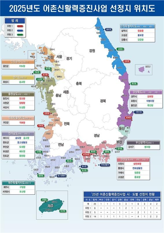 해양수산부는 26일 '2025년도 어촌신활력증진 사업' 신규 대상지 25곳을 선정·발표했다.