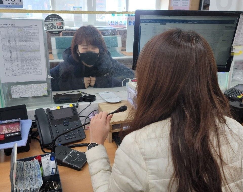 정관읍이 민원창구 양방향 마이크와 스피커를 설치하고 민원인과 소통하고 있다. 기장군 정관읍 제공