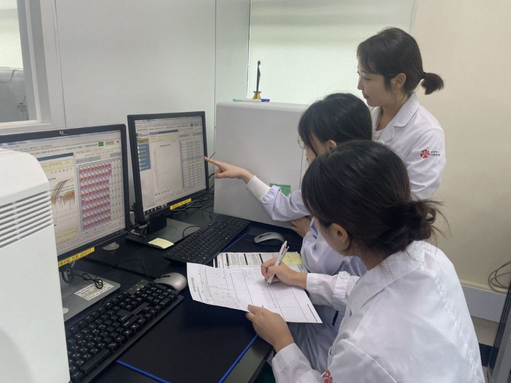 광주보건환경연구원 연구원들이 노로바이러스 병원체에 대한 검사 결과를 확인하고 있다. 광주보건환경연구원 제공