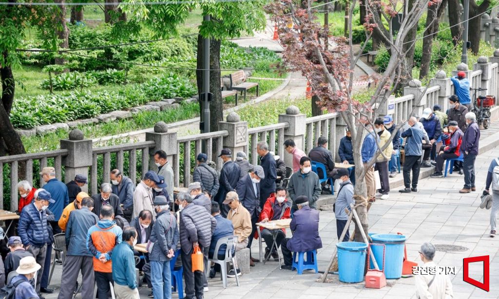 30일 서울 종로구 탑골공원 인근에서 노인들이 삼삼오오 모여 있다. 사진=강진형 기자aymsdream@