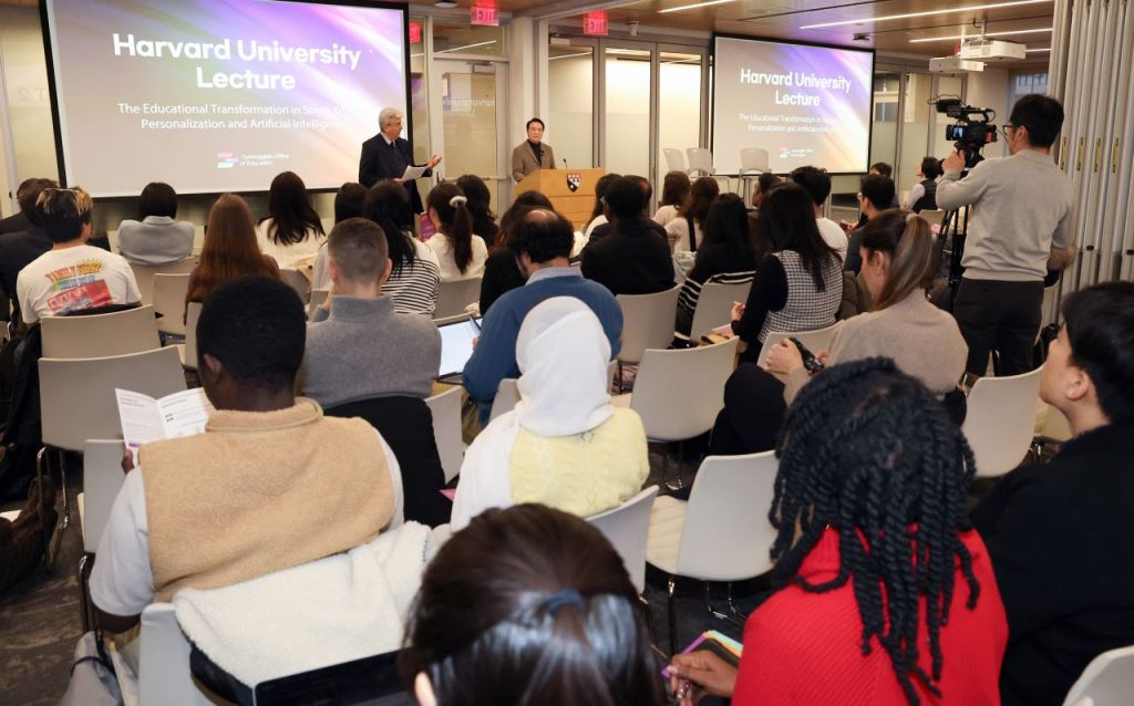 임태희 교육감은 이날 하버드대 대학원생과 교수, 학교 관계자 등 150여명이 참석한 가운데 진행된 특강에서 ‘한국(경기도)의 교육개혁: 학생 맞춤형 교육과 인공지능의 역할’을 주제로 강의했다.