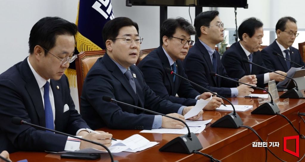 박찬대 더불어민주당 원내대표가 27일 국회에서 열린 정책조정회의에서 발언하고 있다.
