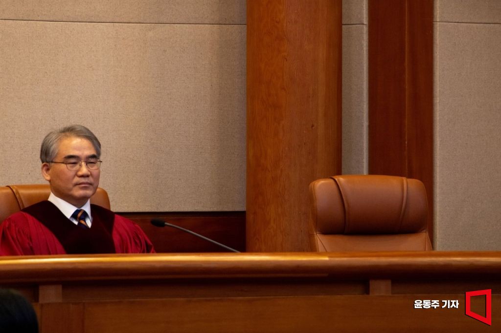 27일 서울 종로구 헌법재판소에서 열린 우원식 국회의장이 최상목 대통령 권한대행 부총리 겸 기획재정부 장관을 상대로 낸 마은혁 후보자의 임명 보류 관련 권한쟁의심판에서 헌법재판관 자리가 공석으로 있다.