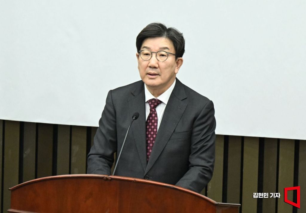 권성동 국민의힘 원내대표가 27일 국회에서 열린 의원총회에서 발언하고 있다. 2025.2.27 김현민 기자