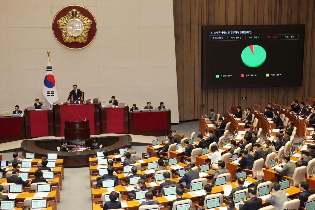 27일 국회 본회의에서 조세특례제한법 일부개정법률안이 가결되고 있다. 연합뉴스