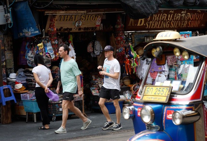 태국 방콕 거리를 걷고 있는 외국인 관광객들. EPA 연합뉴스