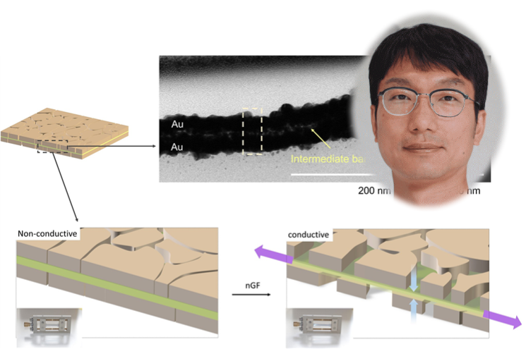 논문에 따르면 연구팀은 금속 나노 박막 사이에 폴리 디메틸실록세인(PDMS)으로 구성된 ‘소프트 나노 베리어’라는 층을 삽입한 신소재를 만들었다.