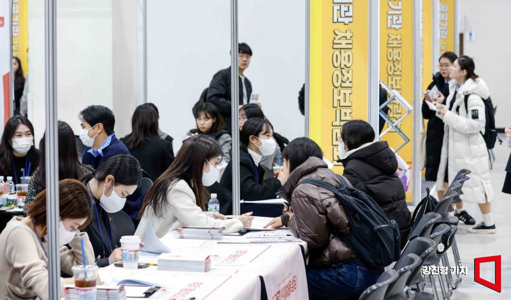 1월 14일 서울 서초구 aT센터에서 열린 '2025 공공기관 채용정보박람회'에 참가한 구직자들이 채용상담을 받고 있다. 강진형 기자