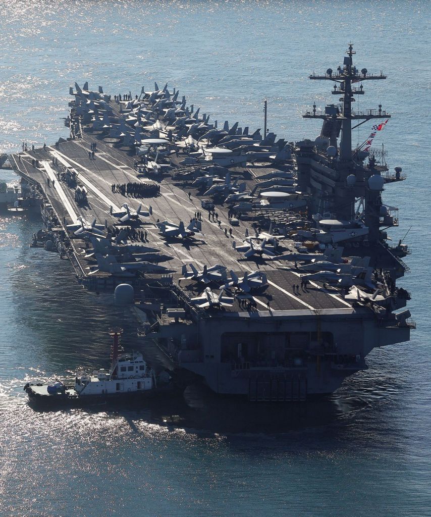 해군은 2일 칼빈슨함 등 미국 해군 제1항모강습단이 2일 부산작전기지에 입항했다고 밝혔다. 칼빈슨함 외에는 순양함 프린스턴(Princeton), 이지스구축함 스터렛(Sterett)도 부산작전기지에 모습을 드러냈다.