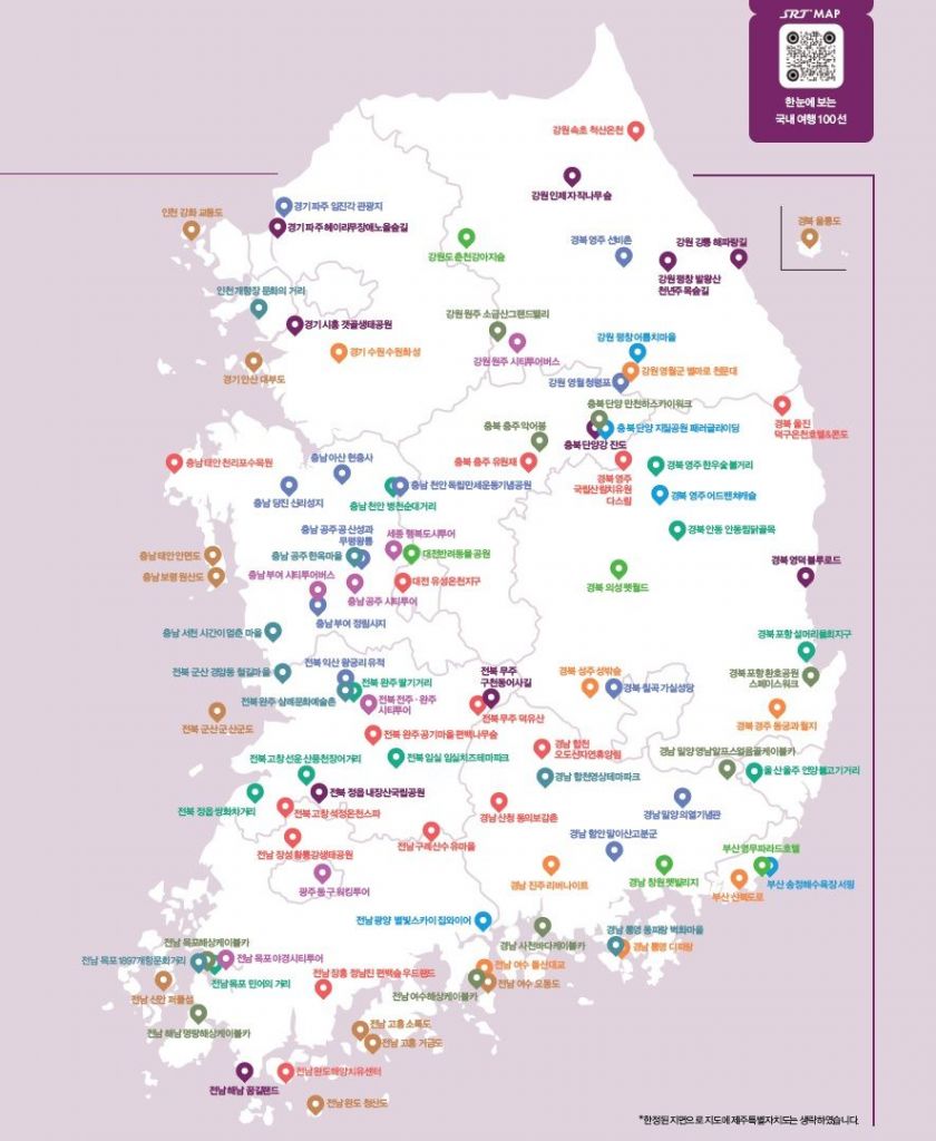 수서고속철(SRT) 운영사 에스알(SR)이 기내지 SRT매거진 창간 100호를 맞아 국내 여행지 100곳을 선정했다고 2일 밝혔다.