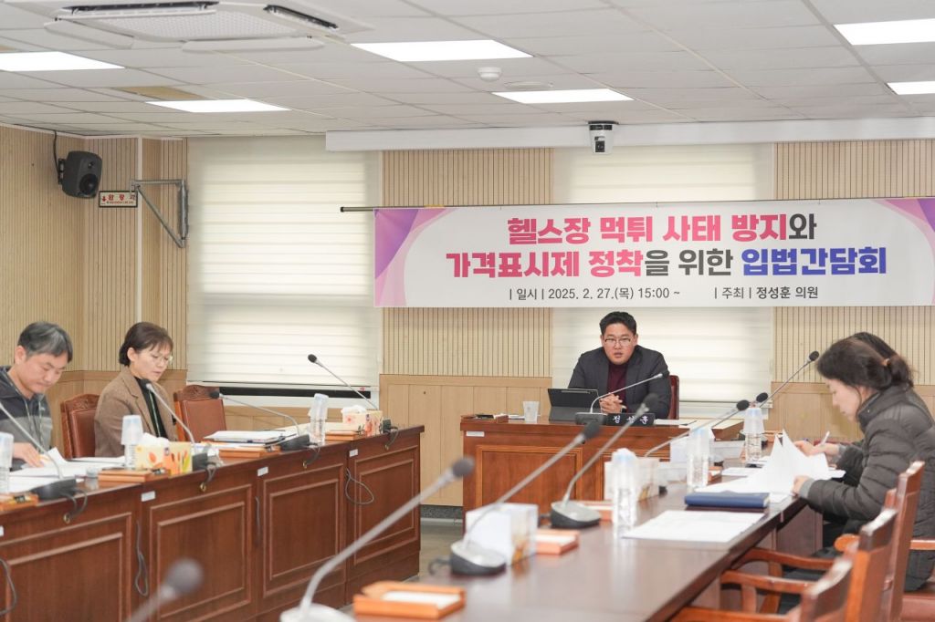 경남 양산시의회 정성훈 의원은 지난 27일 시의회 특별위원회실에서 ‘헬스장 먹튀 사태 방지와 가격표시제 정착을 위한 입법간담회’를 개최했다.
