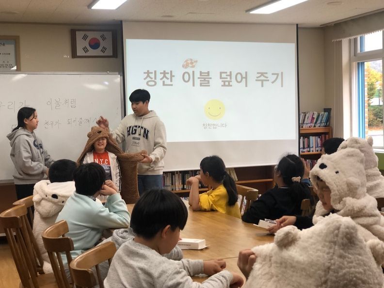 ‘친구사랑의 날’ 행사에 참여하고 있는 옥천 군서초 학생들 [이미지 출처=군서초등학교 제공]