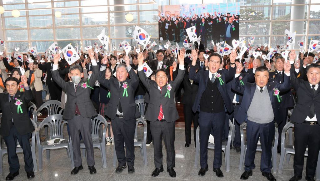 강 시장은 제106주년 3·1절 기념식이 열린 지난 1일 시청 1층 시민홀에서 “106년 전 독립을 위해 새로운 시작을 선언한 그날의 풍경과 광장에 모여 응원봉을 들고 노래를 부르며 과거로 돌아갈 수는 없다며 외치던 오늘날의 풍경이 떠올랐다”며 “3·1독립선언이 있었듯 오늘 우리도 새로운 시대를 위한 선언을 한다”며 ‘신(新)독립선언’을 낭독했다.
