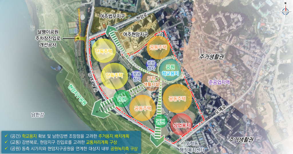 현암1지구 도시개발사업은 현암동 일원에 31만9813㎡ 규모로 사업비는 약 1290억원이 투입되며 혼용방식(수용·사용+환지)으로 여주시와 여주도시공사가 공동시행 추진 예정이다. 앞으로 경기도에 구역지정 및 개발계획수립 요청을 시작으로 경기도 도시계획위원회, 국토부 수도권정비위원회 등 행정절차를 진행할 예정이다.