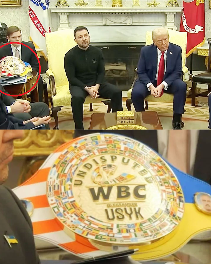1일(현지시간) 미 CNN 등은 젤렌스키 대통령이 지난달 28일 미국 워싱턴 D.C. 백악관에서 열린 트럼프 대통령과의 정상회담에 '우크라이나 복싱 영웅'으로 불리는 올렉산드르 우식의 챔피언 벨트를 들고 갔다고 전했다. 올렉산드르 우식은 현 WBC·WBA·WBO 헤비급 통합 챔피언이다. 젤렌스키 대통령은 트럼프 대통령이 복싱을 좋아한다는 점을 겨냥해 우식의 챔피언 벨트를 가져간 것으로 추정된다.