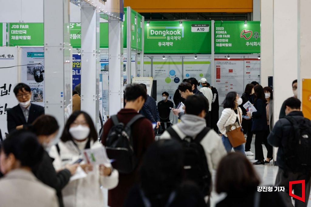 2023년 3월 2일 서울 서초구 aT센터에서 열린 '대한민국 채용박람회'에 참가한 구직자들로 붐비고 있다. 강진형 기자